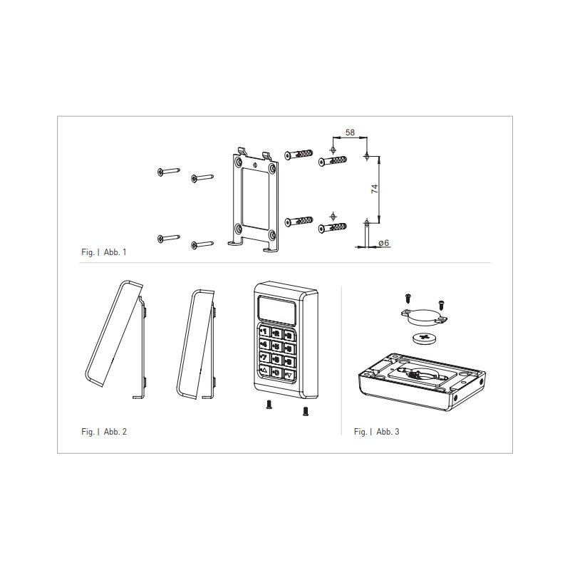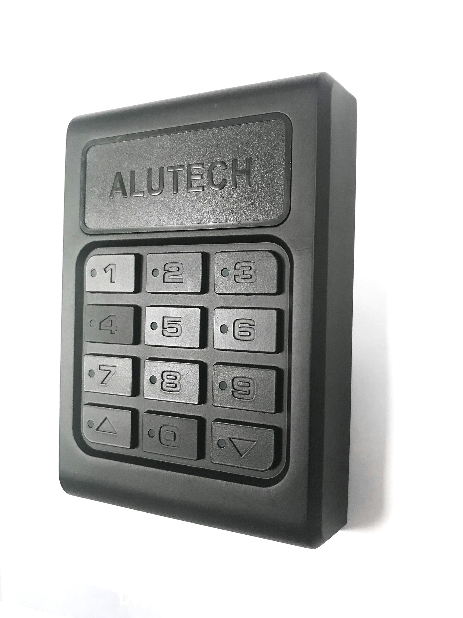 2-kanaals draadloos codeklavier in opbouwbehuizing voor afstandsbediening van de ALUTECH Levigato deuraandrijvingen. De deuraandrijving wordt aangestuurd door het invoeren van een vrij definieerbare cijfercode van maximaal 8 cijfers.